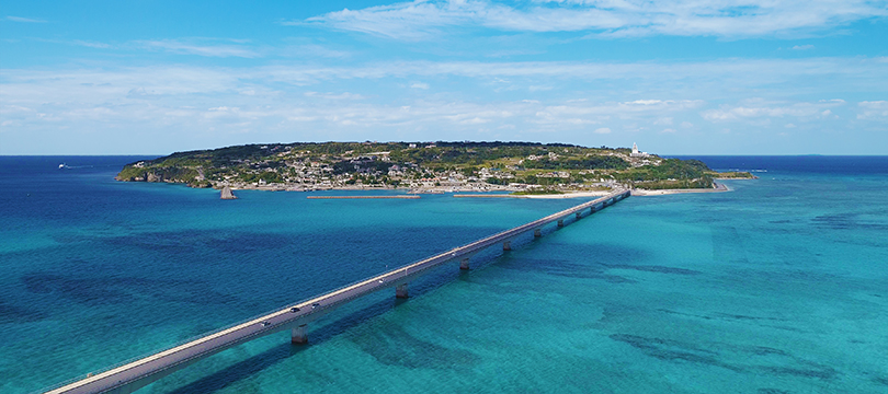 観光バスは、美ら海水族館、絶景で有名な古宇利島、映画のオープンセットのようなショッピングスポット「北谷アメリカンビレッジ」へ![]()