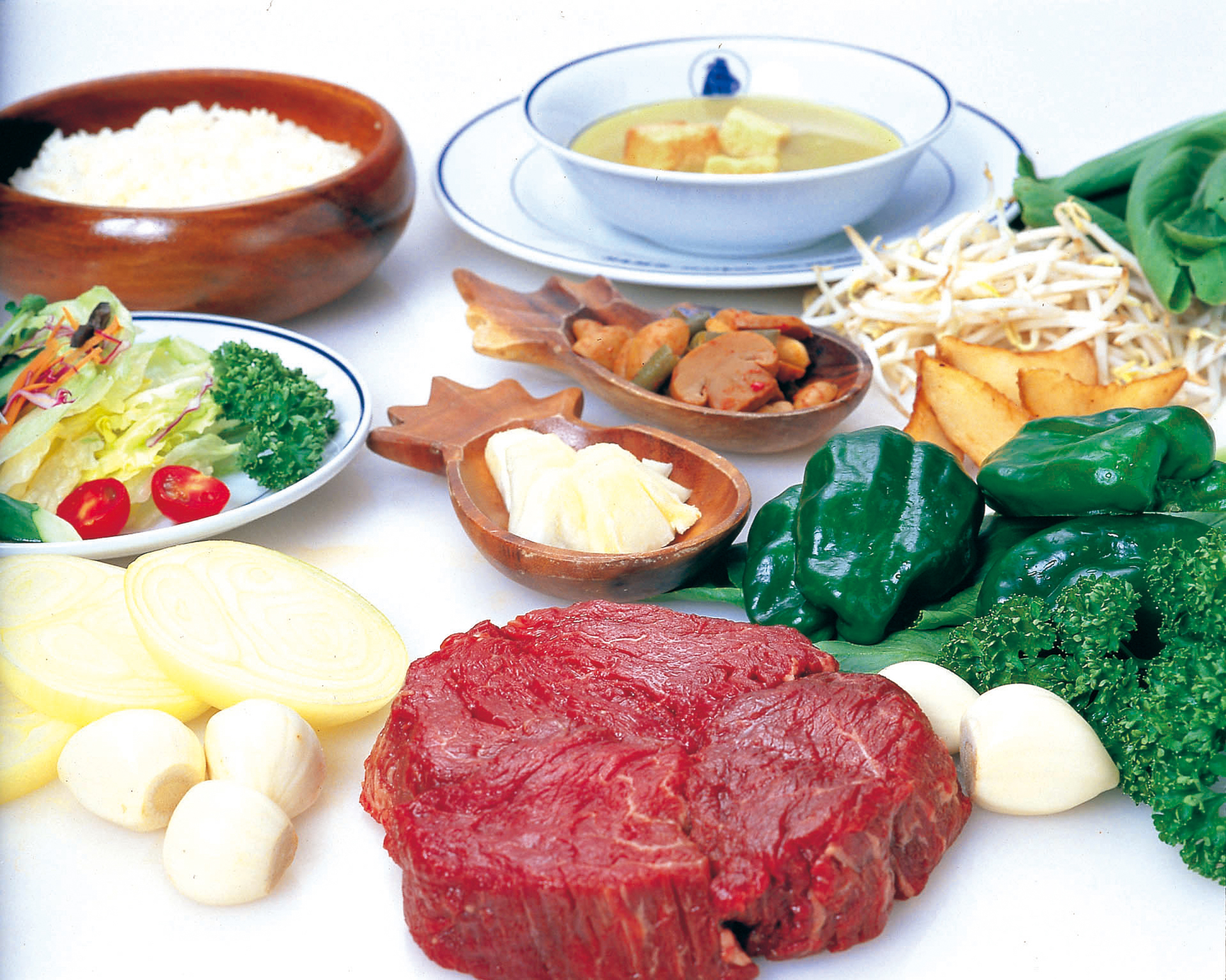 ・各メニューには、特製スープ/ガーデンサラダ/旬の野菜の鉄板焼き/ライスが付きます。