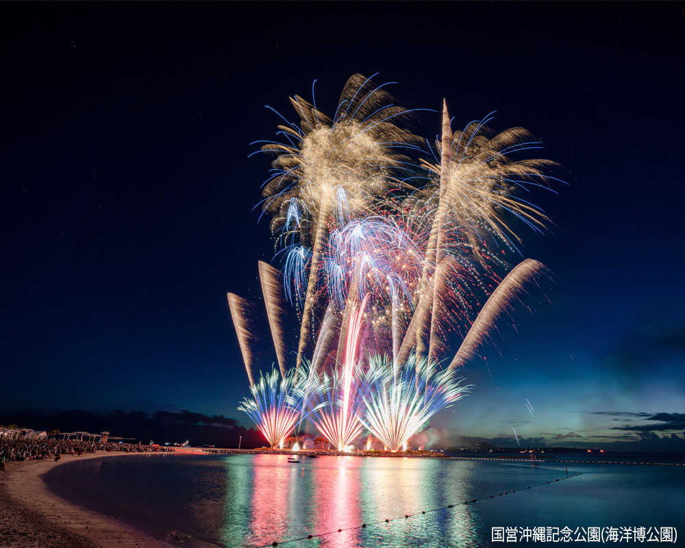 \200席限定の特別プラン/☆夏の一大イベント☆ 県内最大級の約10,000発の花火が夜空を彩る 海洋博公園サマーフェスティバル2026・第48回海洋博公園花火大会へ行く日帰りバスツアー