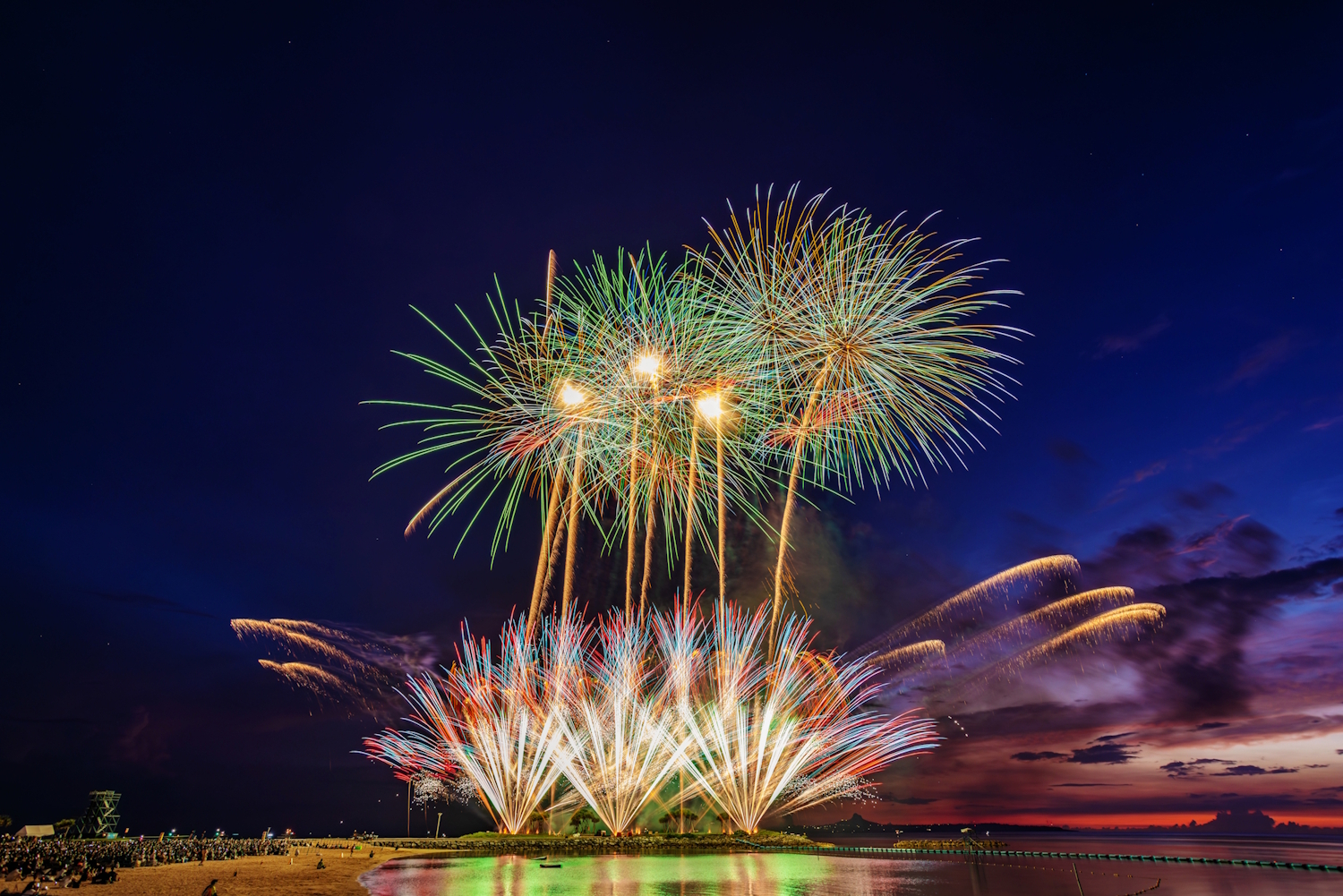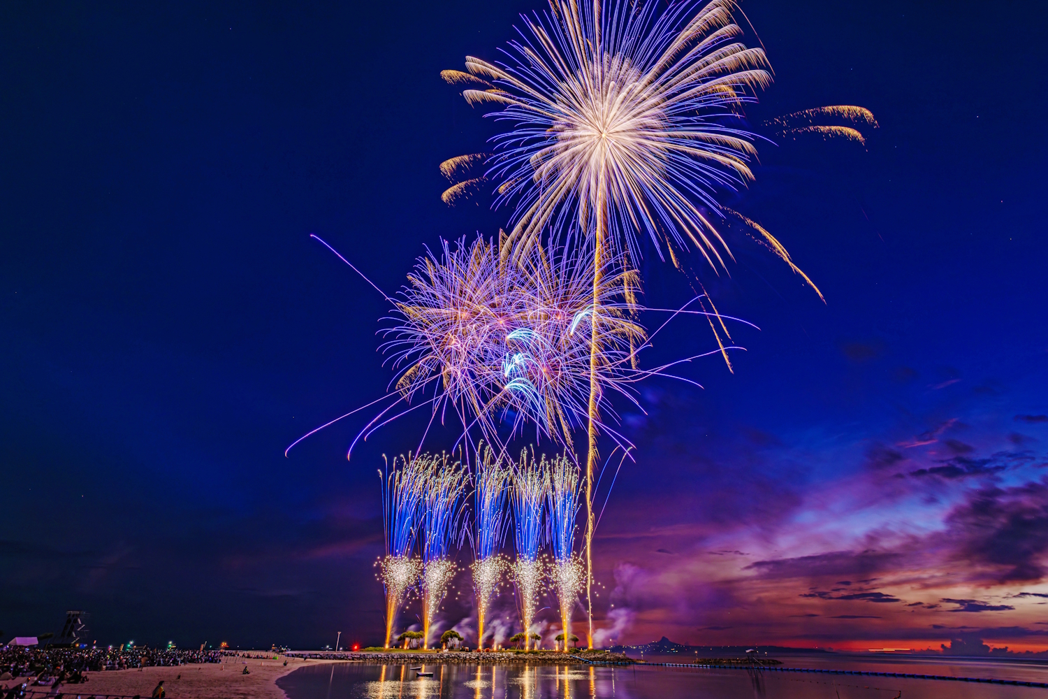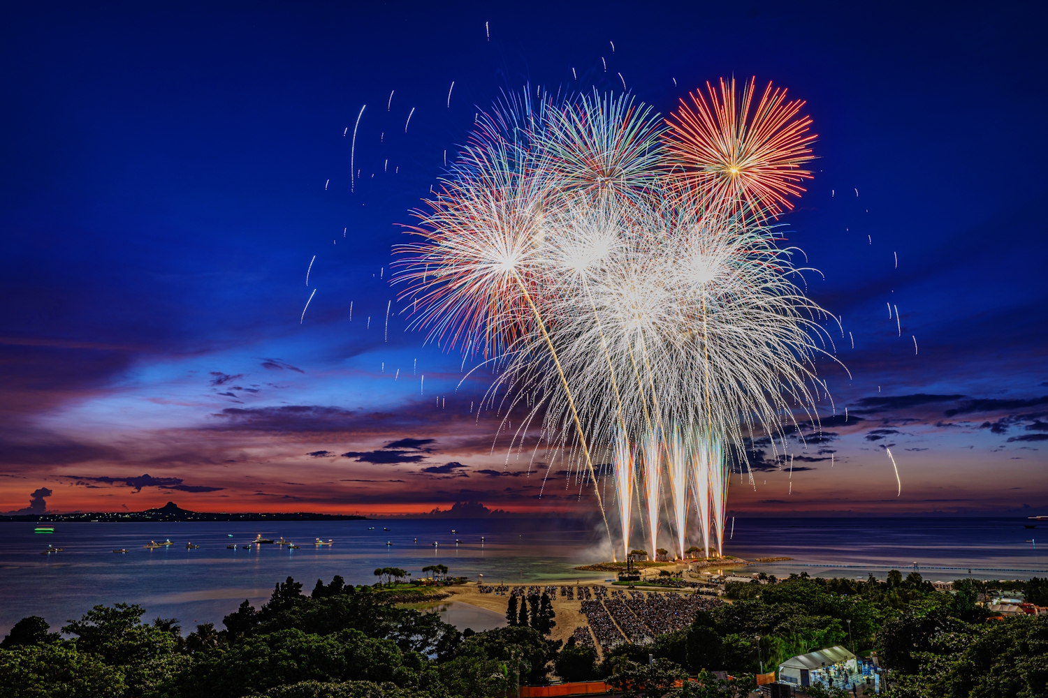 毎年恒例の海洋博公園花火大会!渋滞必須の一大イベントなので、バスツアーがらくちんです♪